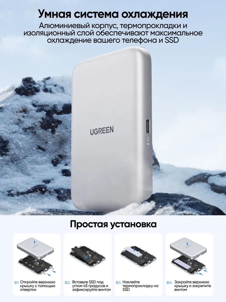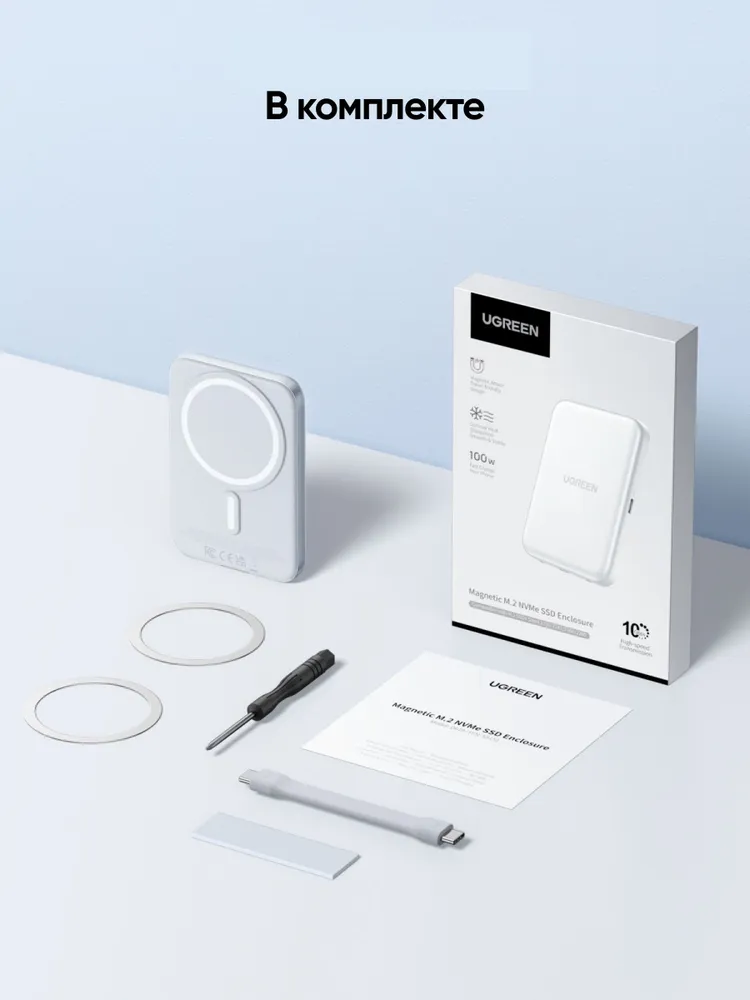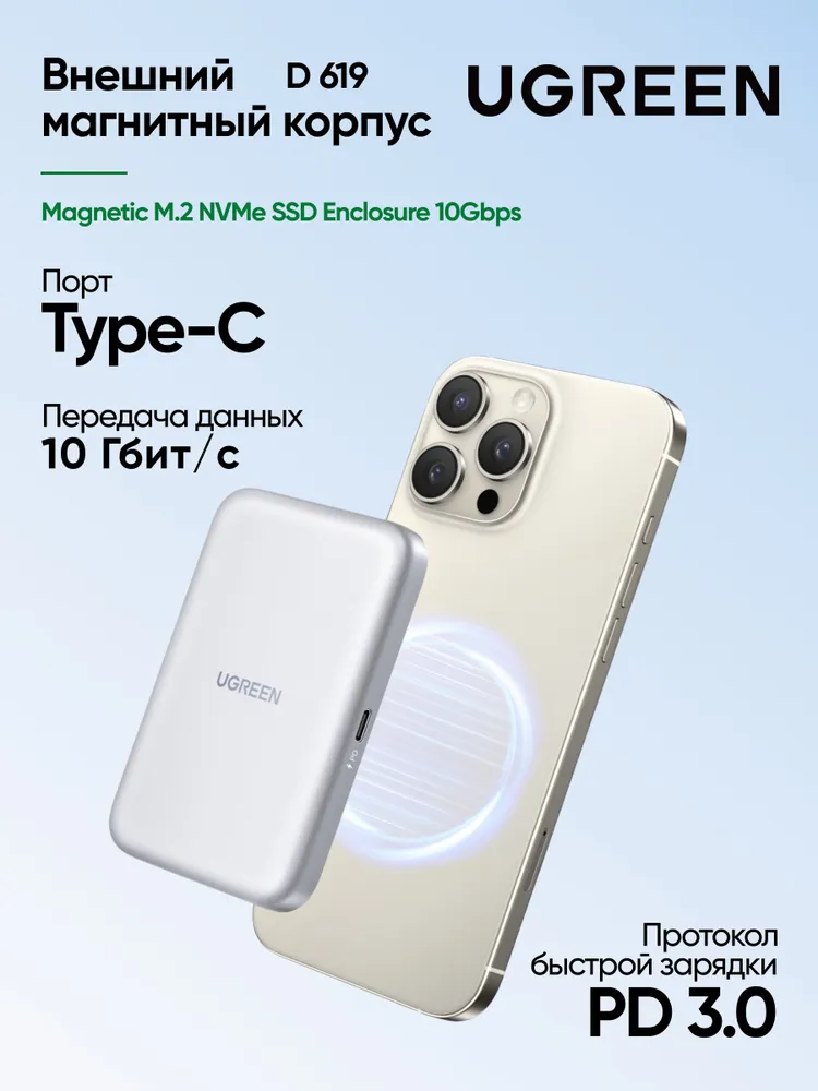 —55151 Бокс внешний для жесткого диска UGREEN D619 Magnetic M.2 NVMe SSD Enclosure 10Gbps. Цвет: се