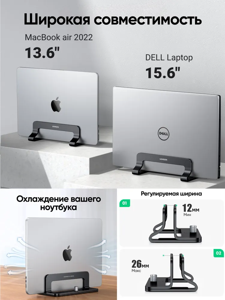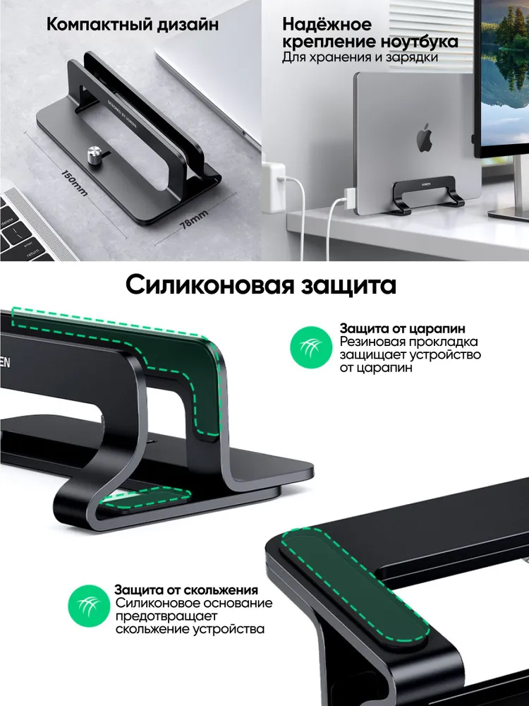 —25706 Подставка-держатель вертикальный для ноутбука UGREEN LP258 Vertical Laptop Stand. Цвет: глуб