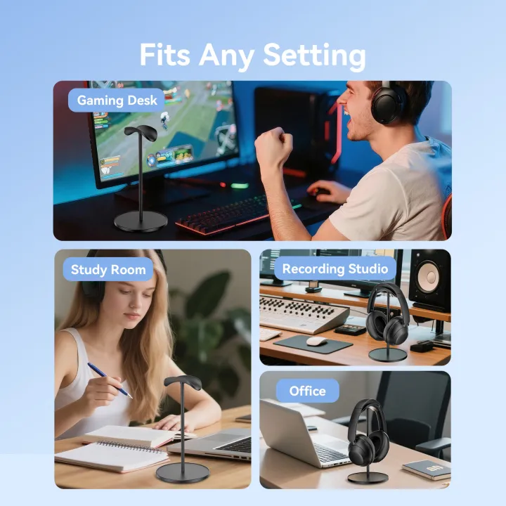 KSOB0 Premium U-Shaped Desktop Headphone Stand Black ABS + Rubber-Coated Metal Type