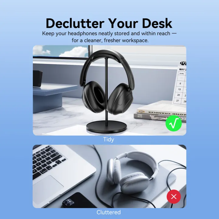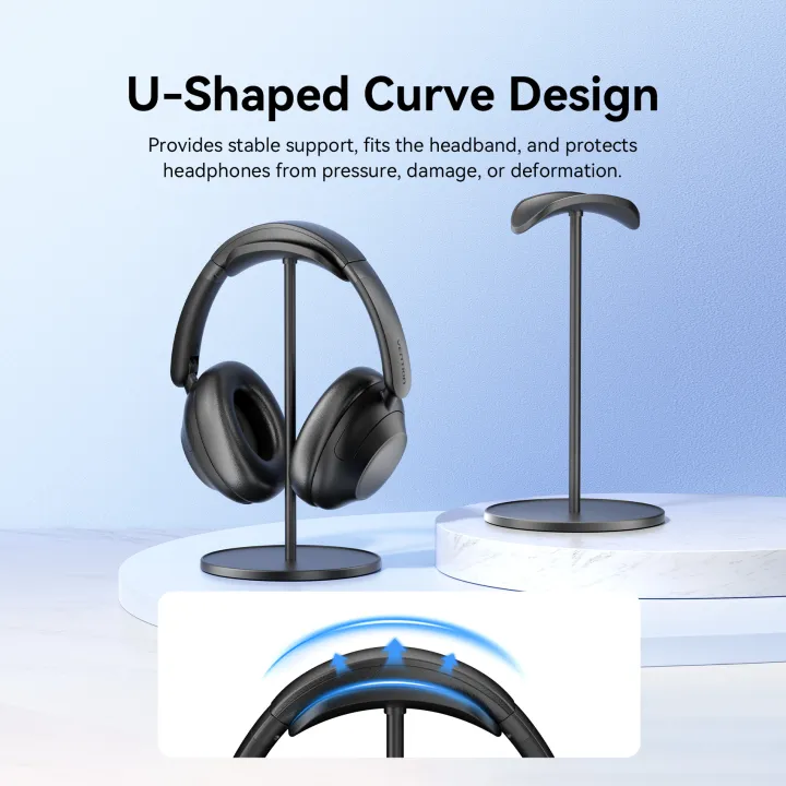 —KSOB0 Premium U-Shaped Desktop Headphone Stand Black ABS + Rubber-Coated Metal Type