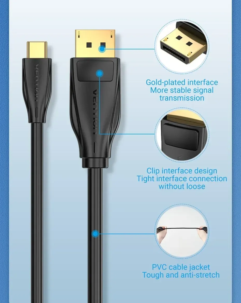 CGYBF Кабель USB-C to DP 8K Vention 1M Black
