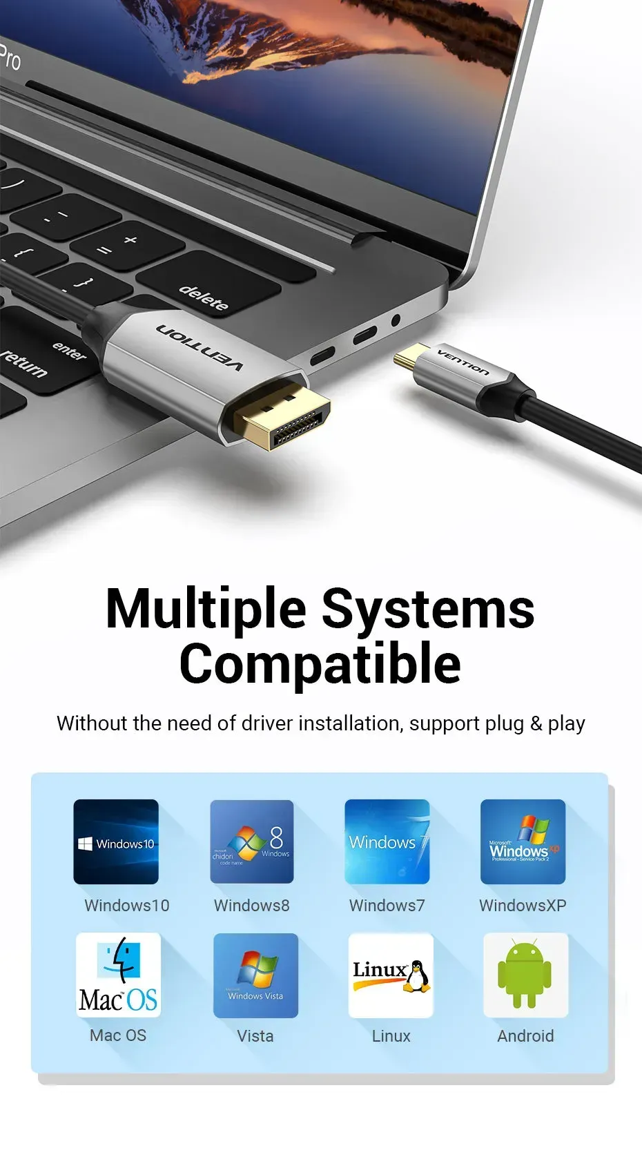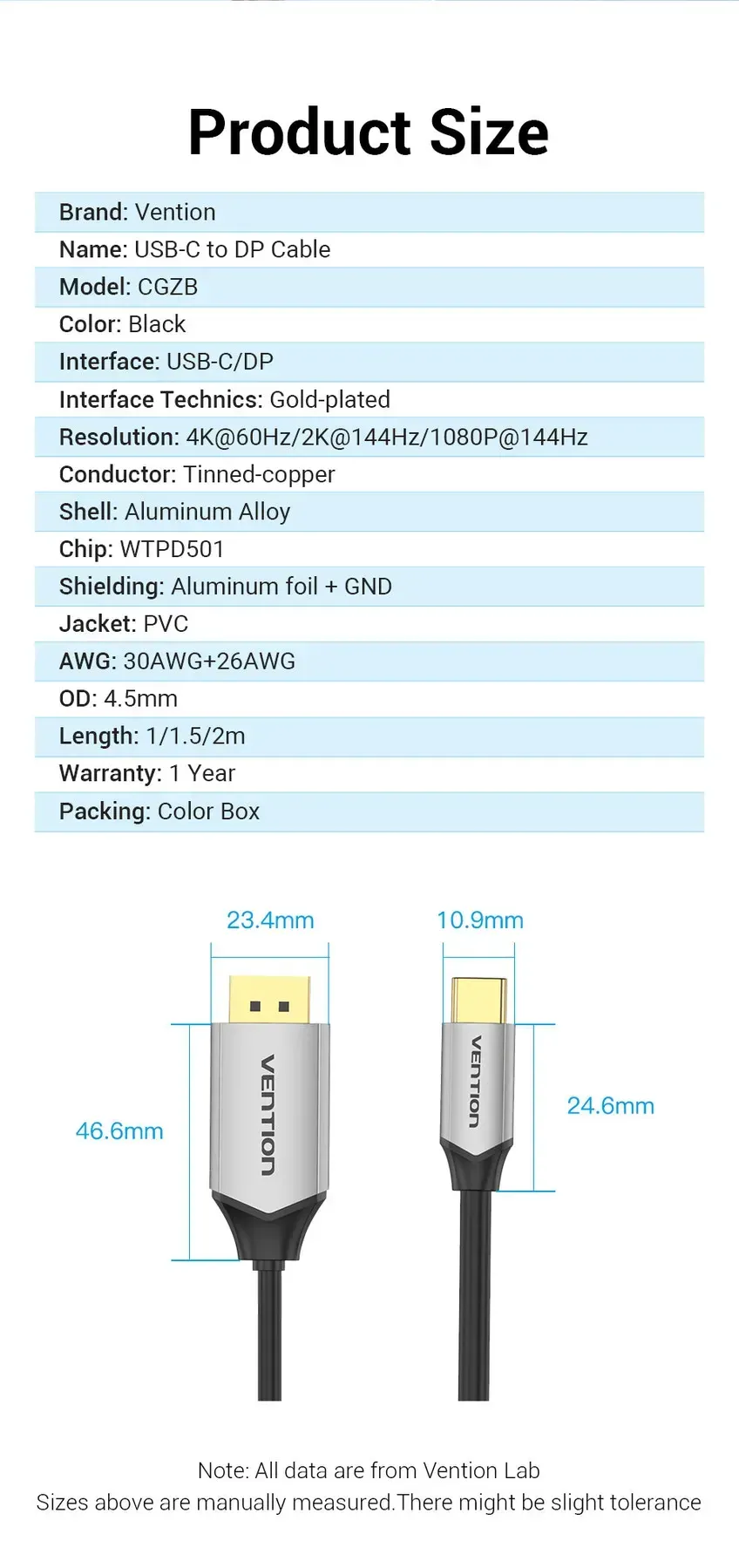 —CGZBF Кабель USB-C to DP Vention 1M Black