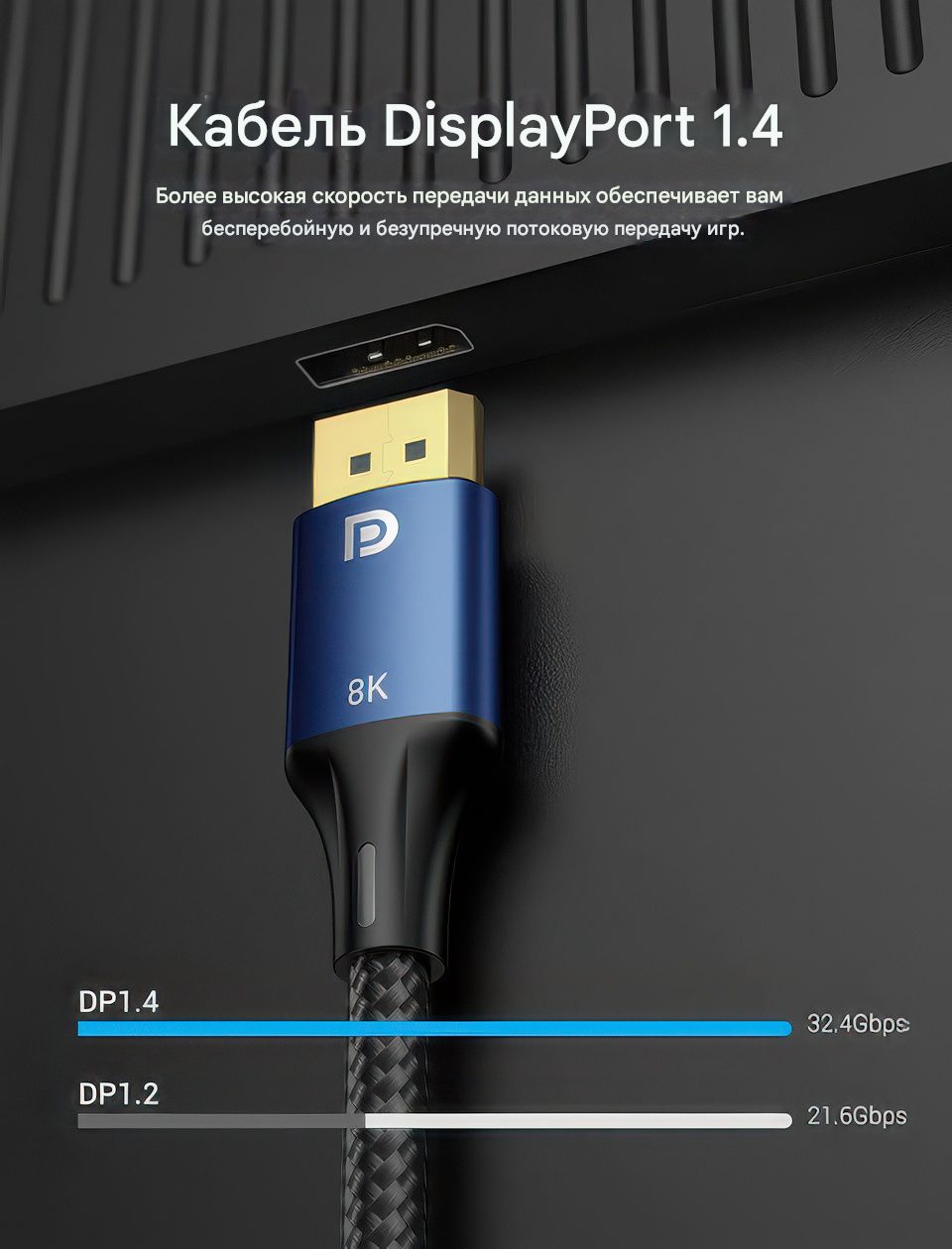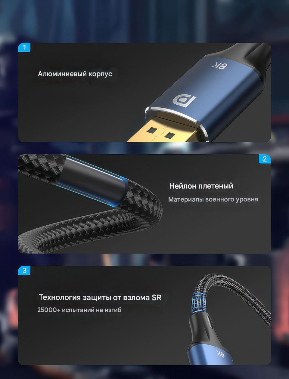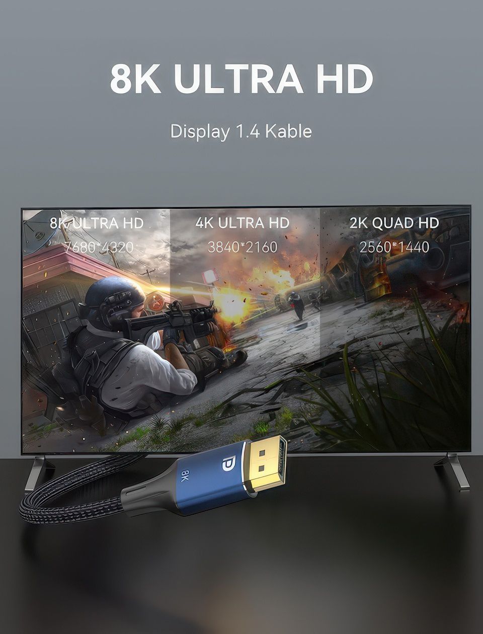 HCELG Кабель Cotton Braided DP Vention 8K 1.5M Blue Aluminum Alloy Type