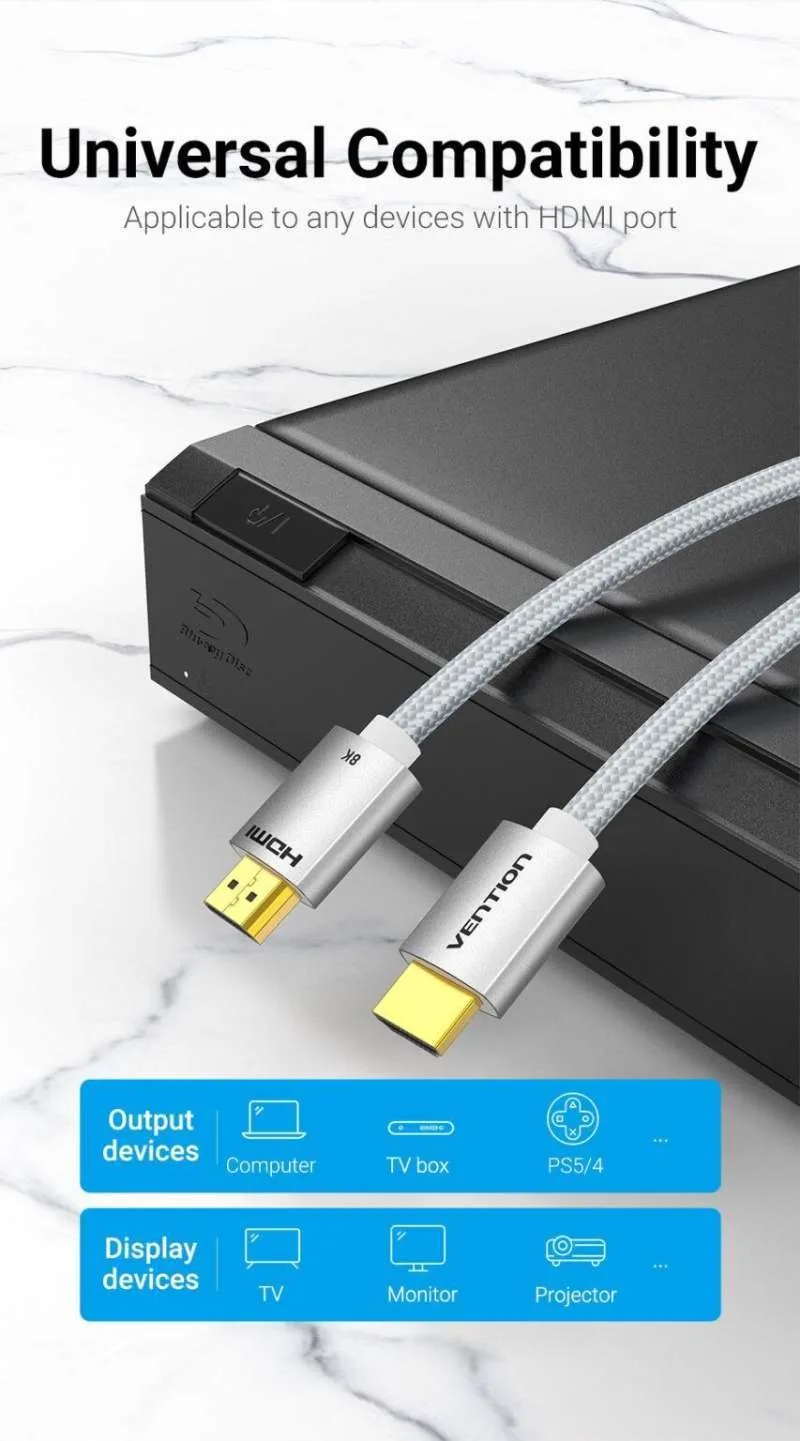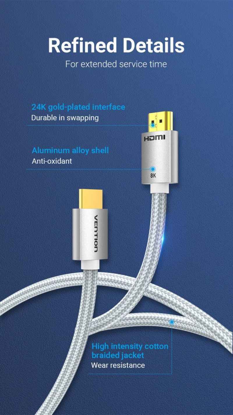 ALCII HDMI Male to Male Cable 8K 3M Silver Aluminum Alloy Type