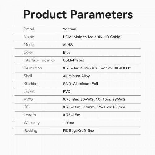 ALHSH Кабель Vention HDMI v1.4 4K 30Hz, 2м, Blue