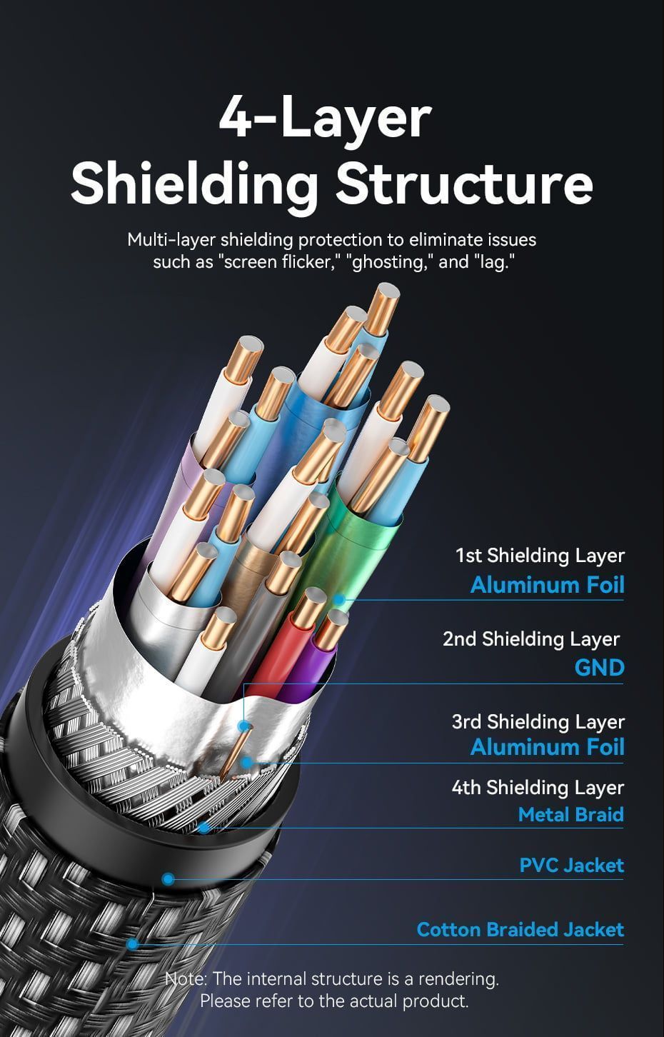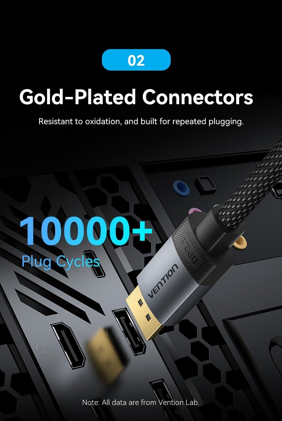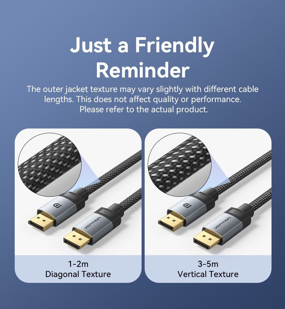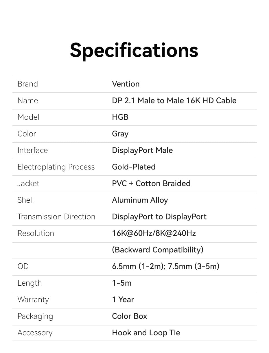 —HGBHI Cotton Braided DP 2.1 Male to Male 16K HD Cable 3M Gray Aluminum Alloy Type