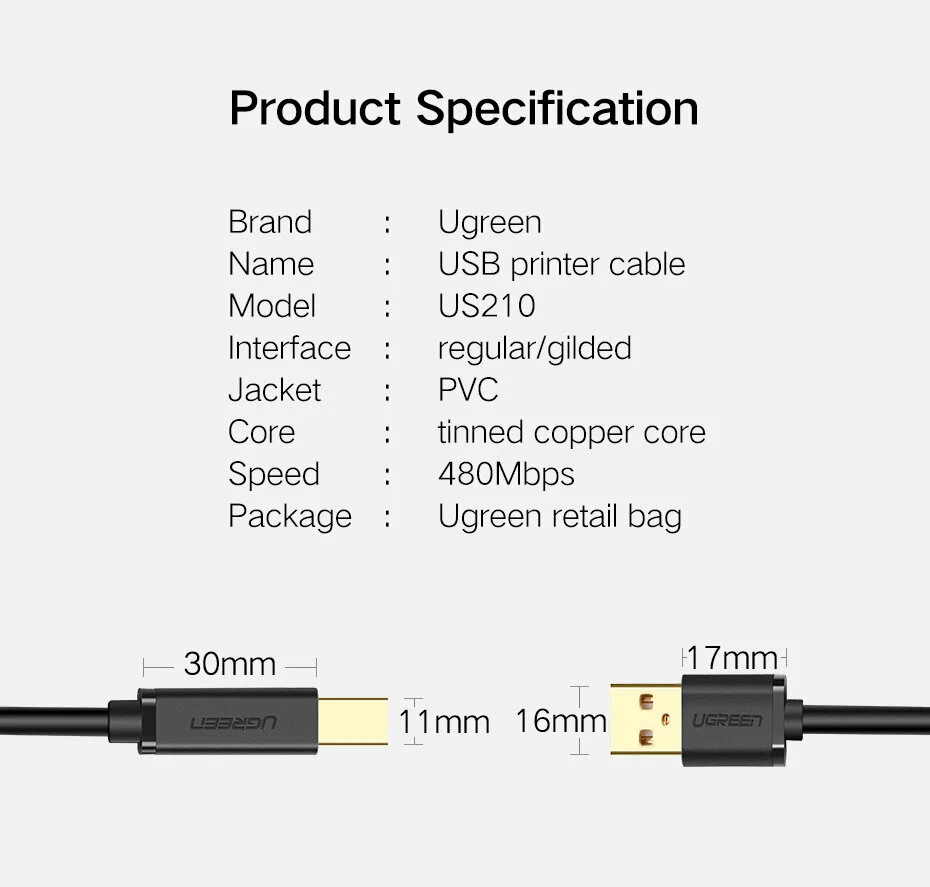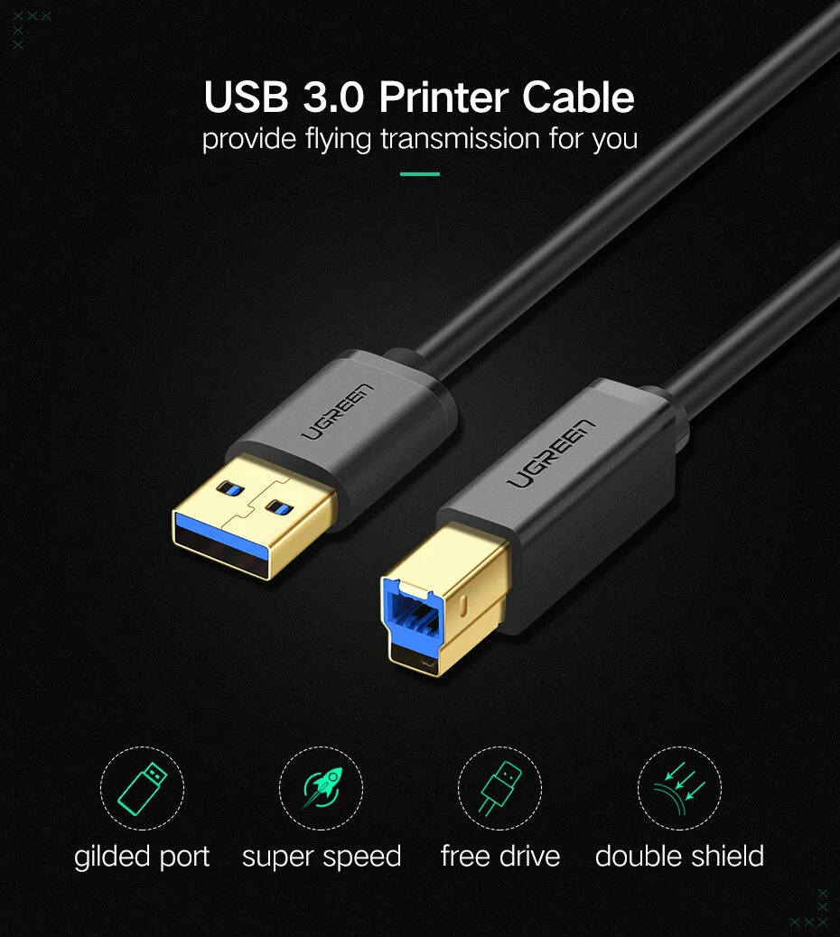 Кабель UGREEN US210 (30753) USB 3.0 AM to BM Print Cable - это высококачественный кабель, который обеспечивает быструю и стабильную передачу данных между устройствами.