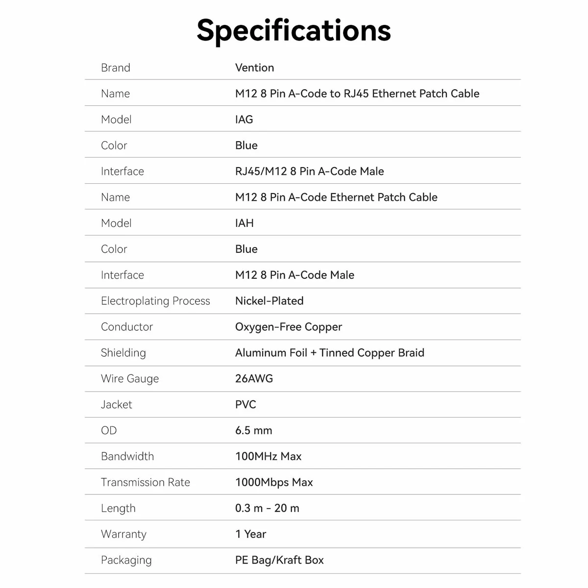 IAHLH M12 8 Pin A-Code Male to M12 8 Pin A-Code Male Ethernet Patch Cable 2M Blue
