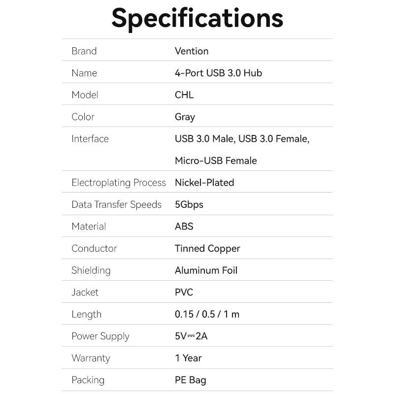 —CHLBF-SCB2 4-Port USB 3.0 Hub with Power Supply 1M Black