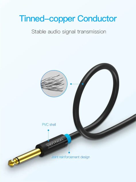 —BAABD 6.35mm TS Male to Male Audio Cable 0.5M Black