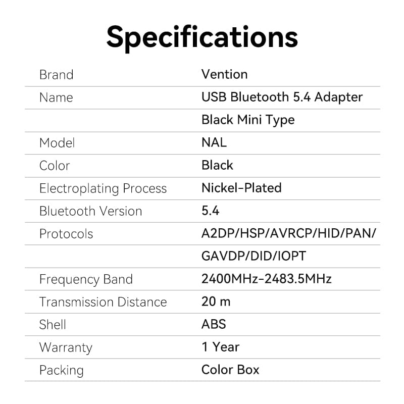 —NALB0 USB Bluetooth 5.4 Adapter Black Mini Type