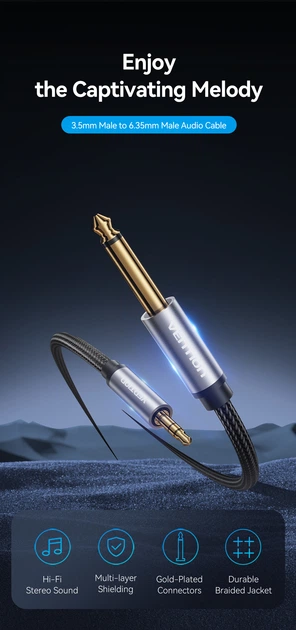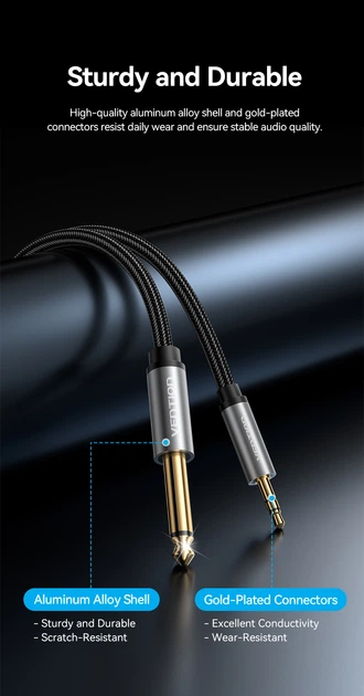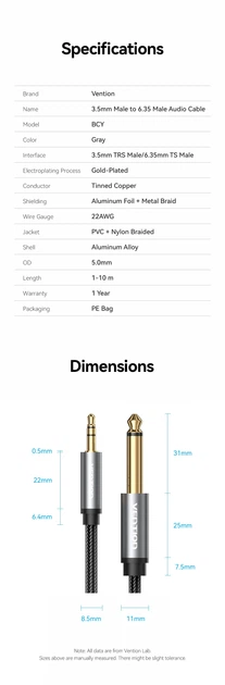 —BCYHL Nylon Braided 3.5mm TRS Male to 6.35mm TS Male Audio Cable 10M Gray Aluminum Alloy Type