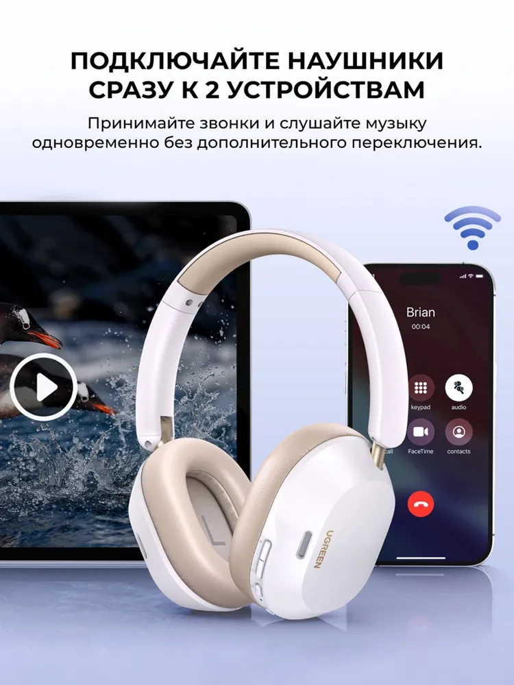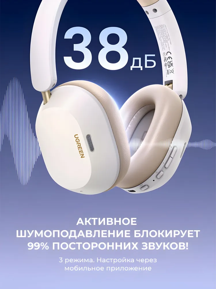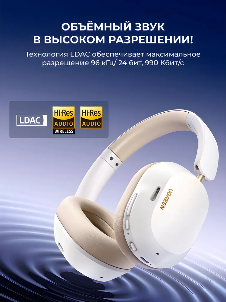 —35758 Накладные наушники UGREEN HP203 HiTune Max 5C Hybrid Active Noise-Cancelling Headphones, белый