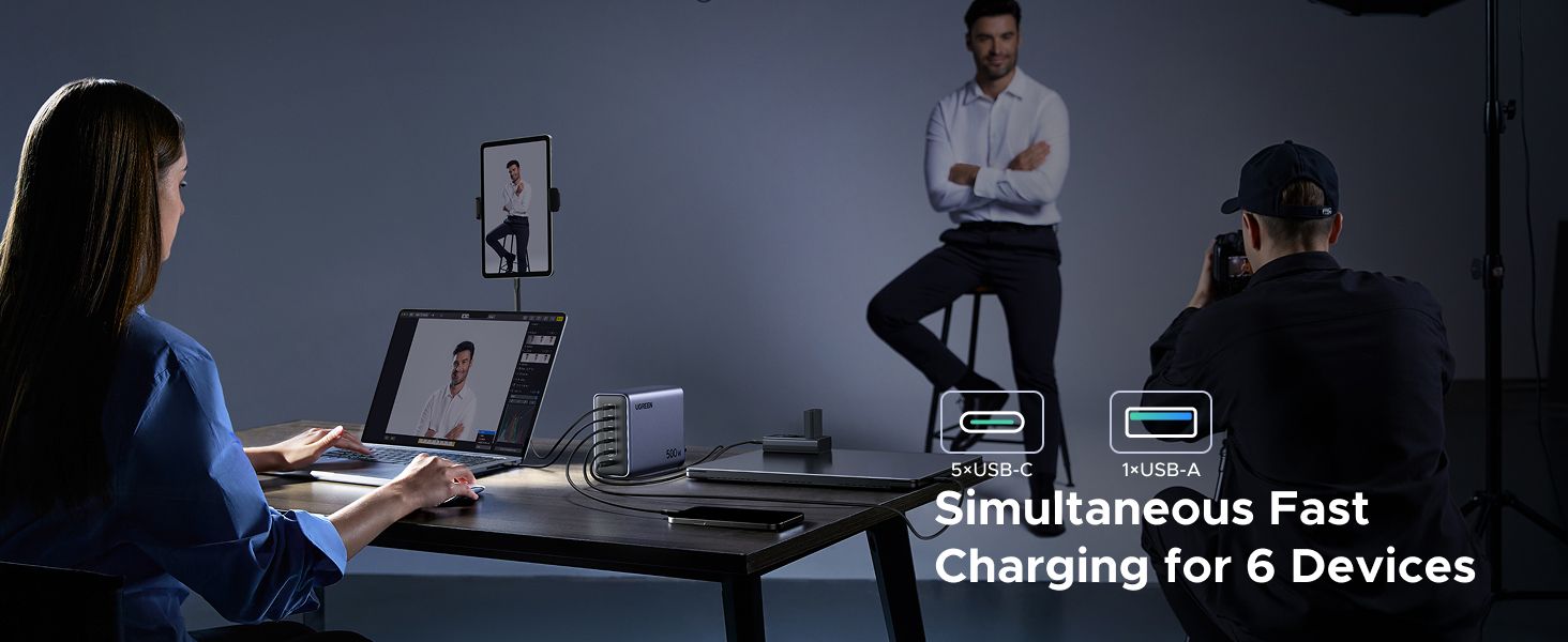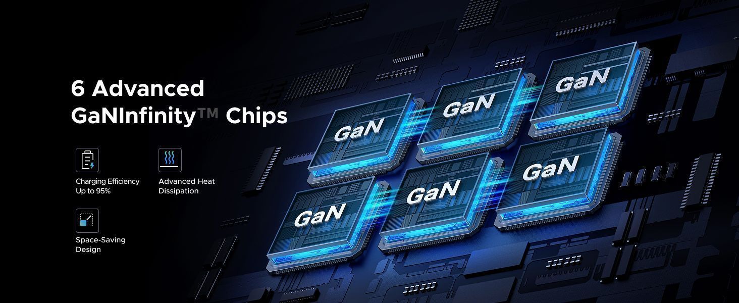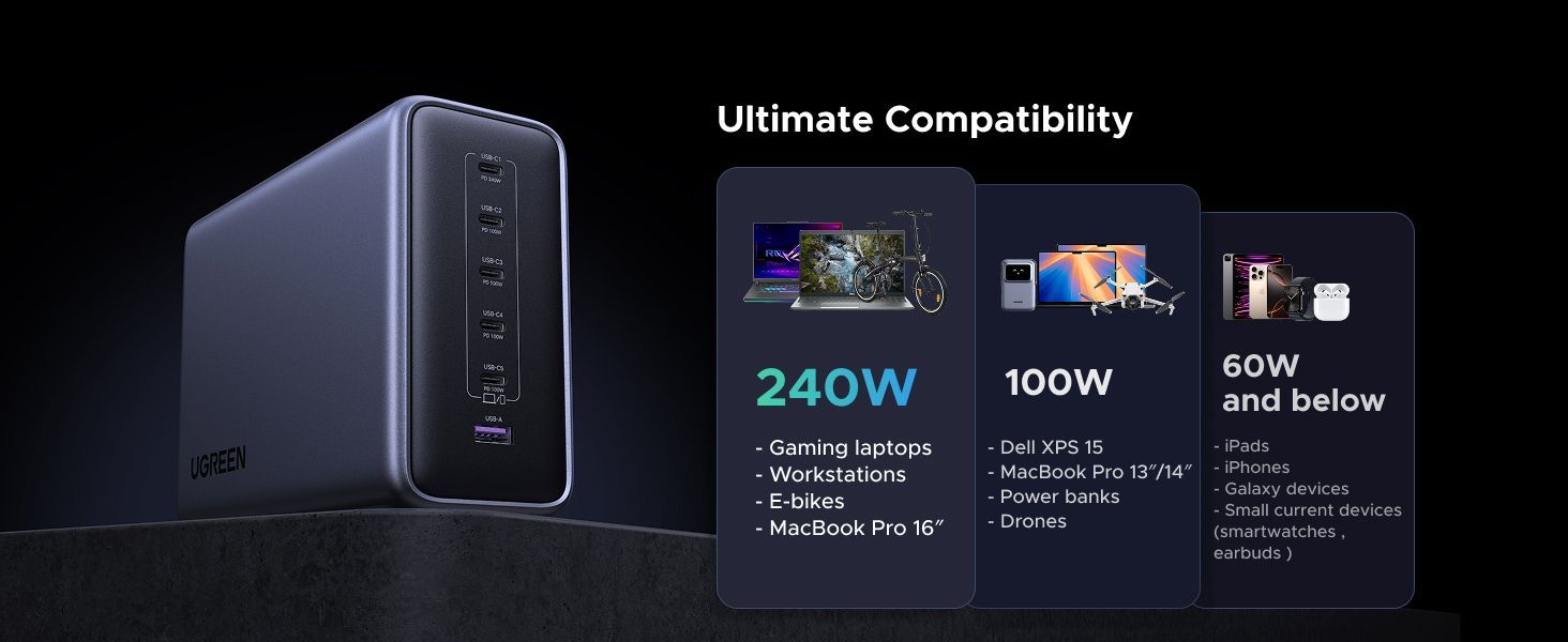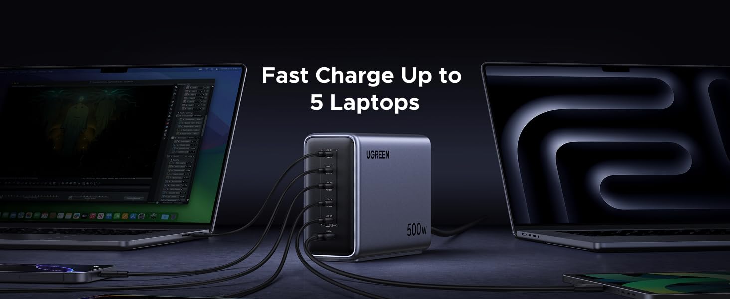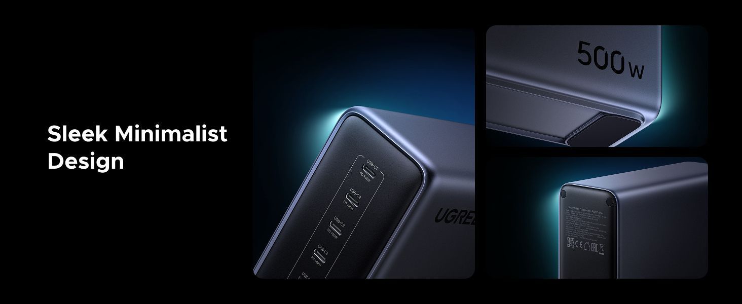 Мощность на максимуме: 500 Вт суммарной отдачи, до 240 Вт от одного порта. Поддерживает даже прожорливые игровые ноутбуки и всю повседневную электронику — заряжает с запасом скорости.